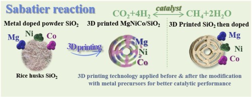 Design of 3D printed Mg doped Ni-Co-containing biowaste-derived porous silica as highly-effective catalysts for CO2 methanation