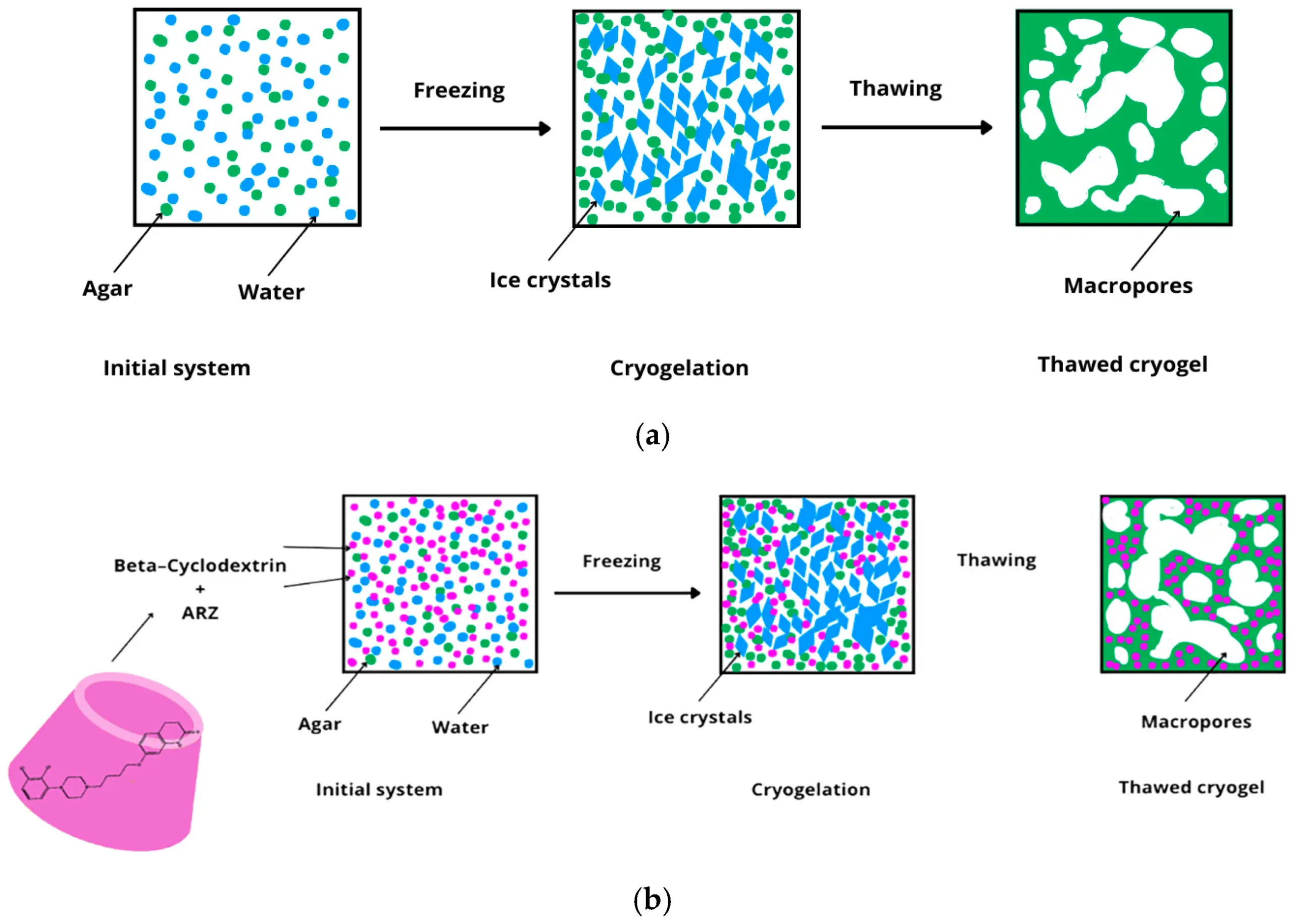 Agar/β-Cyclodextrin Composite Cryogels for Controlled Release of Aripiprazole