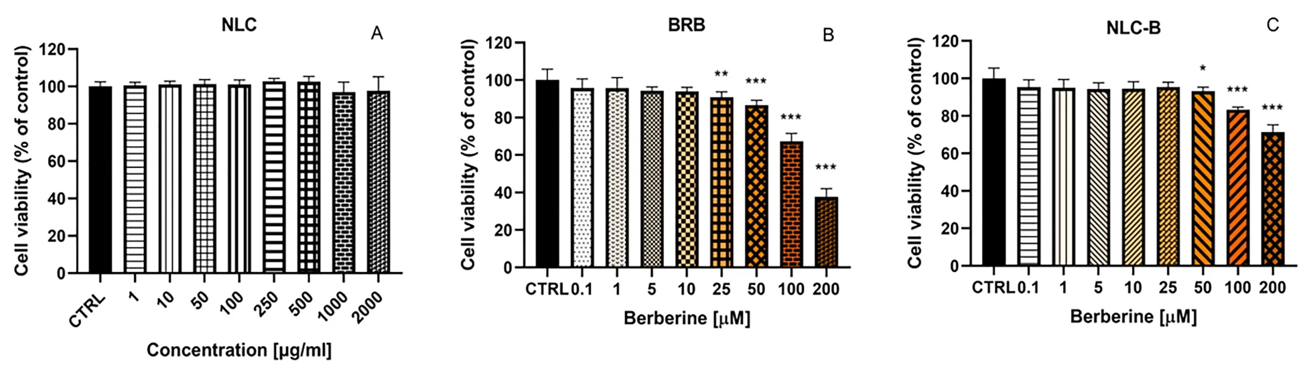 In Vitro Evaluation of the Safety and Antineoplastic Effects in Gastrointestinal Tumors of Nanostructured Lipid Carriers Loaded with Berberine