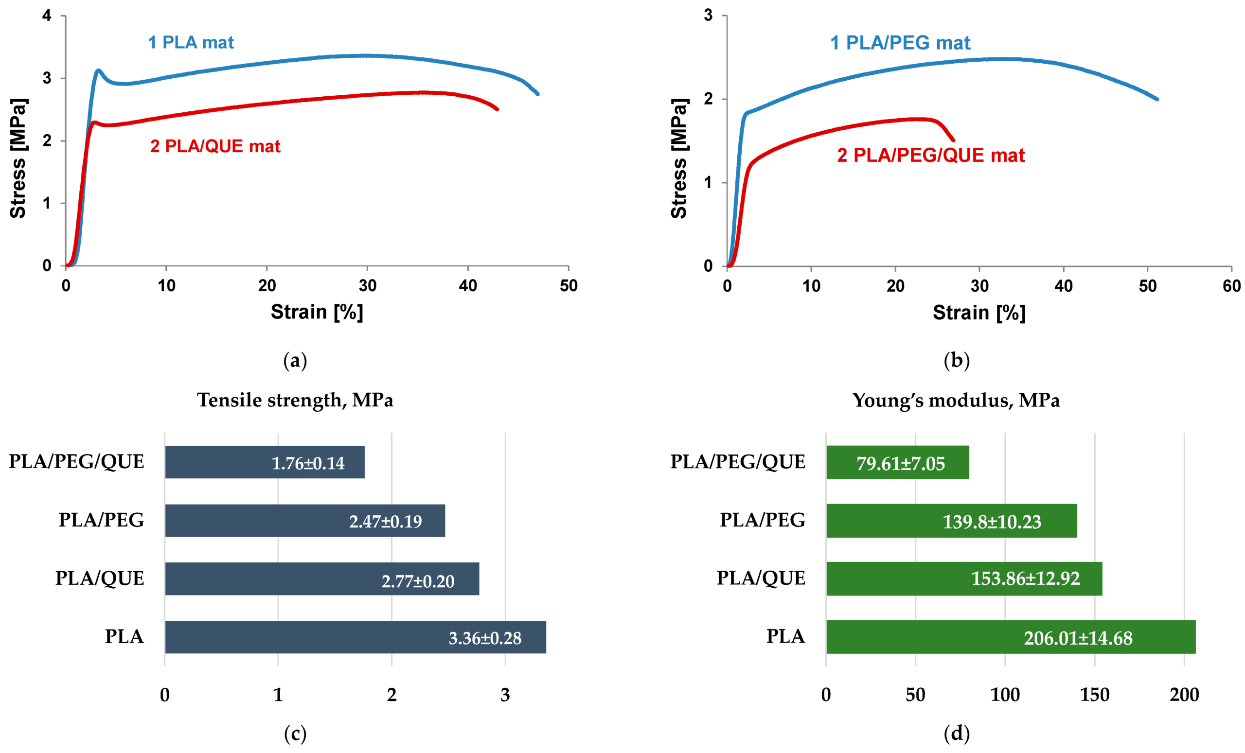 Electrospun Quercetin-Loaded PLA and PLA/Polyethylene Glycol Fibers: Preparation, Characterization, and In Vitro Evaluation