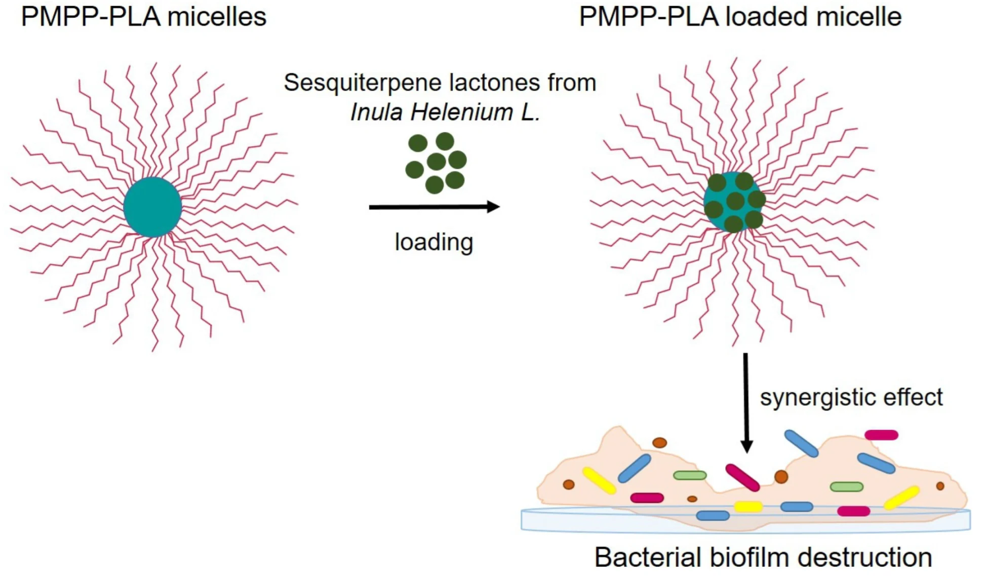 Cationic Polymer Micelles as Carriers of Bioactive Sesquiterpene Lactones from Inula Helenium L. for Effective Treatment of Bacterial Biofilms