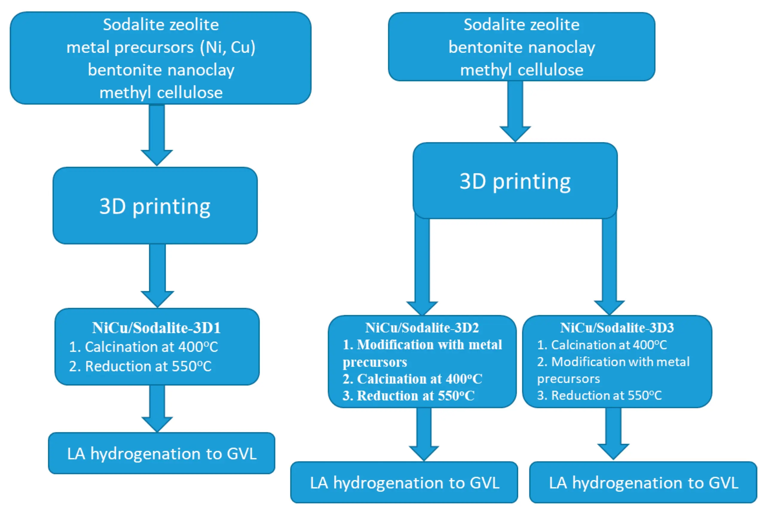 3D Printed Ni–Cu Sodalite Catalysts for Sustainable γ-Valerolactone Production from Levulinic Acid—Effect of the Copper Content and the Method of Preparation